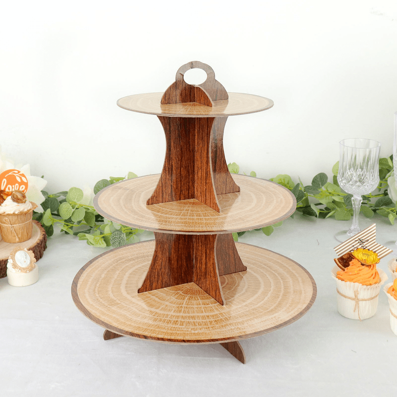 14" 3-Tier Wood Finish Cardboard Treat Tower