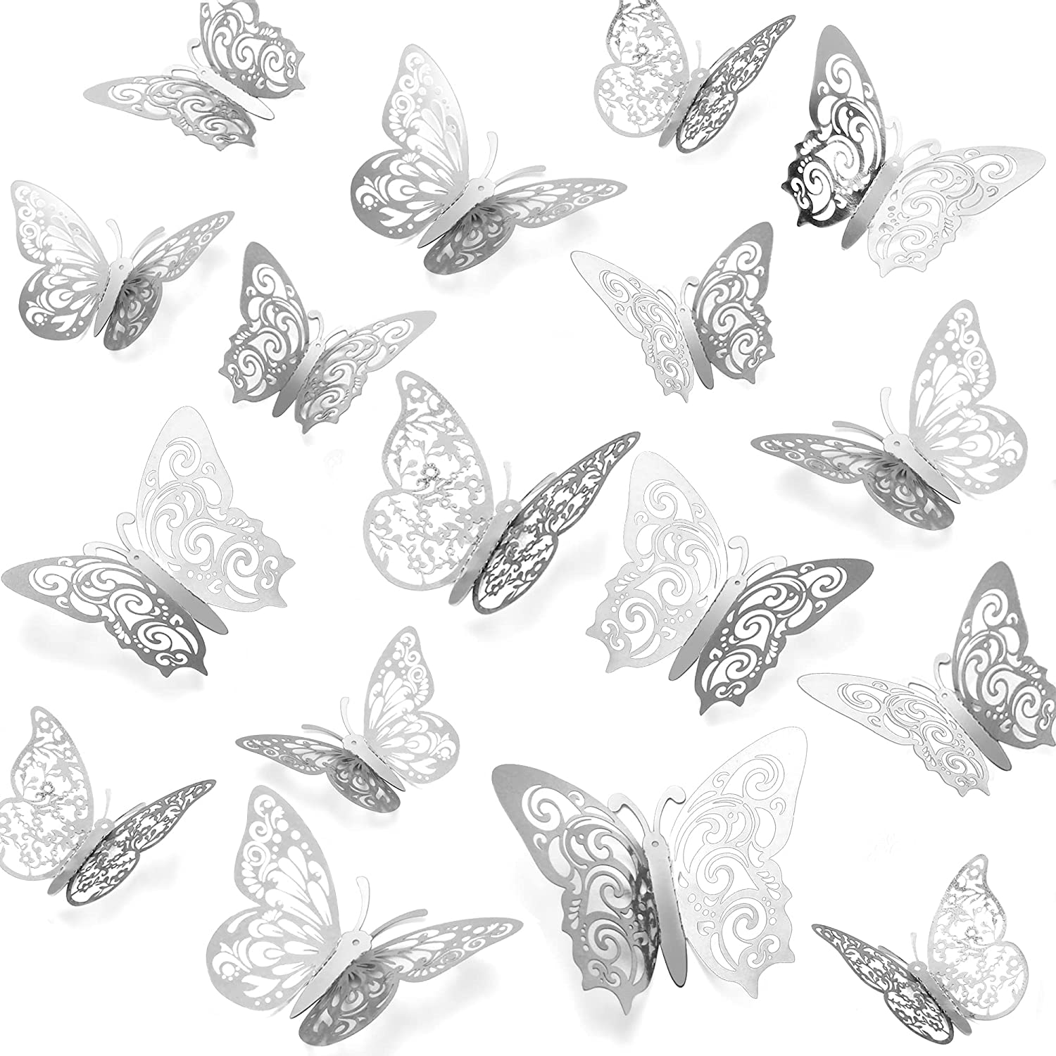 Butterflies Silver Metallic 6pk