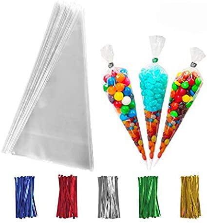 Treat Bags - Cone Shaped 6" x 12"/ties - 25pk