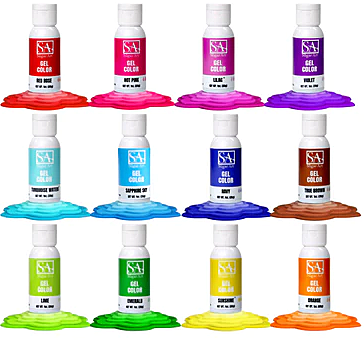 POWERFUL GEL COLORS ARE HERE. THE SUGAR ART GEL COLOR LINE IS THE MOST INTENSE GEL FOOD COLOR ON THE MARKET! THE POWER OF MASTER ELITES IN LIQUID FORM. ACHIEVE A VAST ARRAY OF TONES WITH JUST ONE BOTTLE. FROM PASTELS TO THE MOST VIBRANT COLORS FOR YOUR ICING, FONDANT, BUTTERCREAM AND MORE! OFFERED IN A LARGER BOTTLE THAN INDUSTRY STANDARD, THE SUGAR ART HAS ONCE AGAIN CHANGED THE GAME WHEN IT COMES TO POWERFUL COLORS, PRICE AND SIZE.