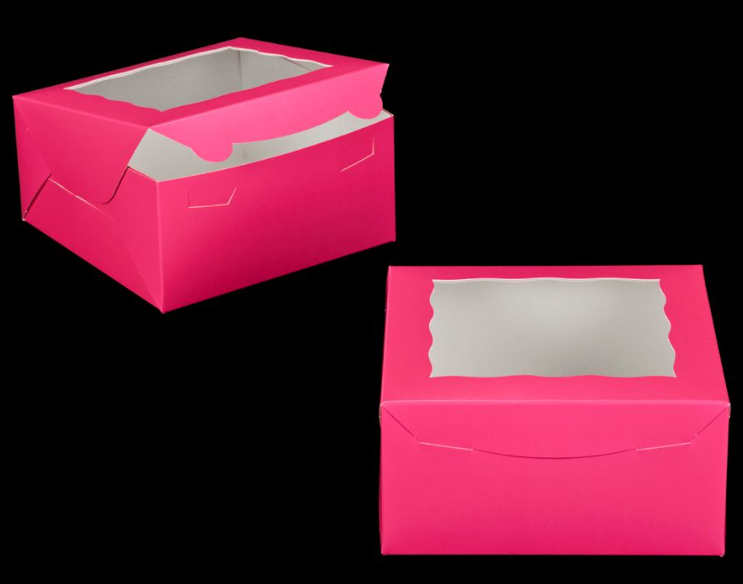 8" x 8" x 4" Pink Lock & Tab Box with Window